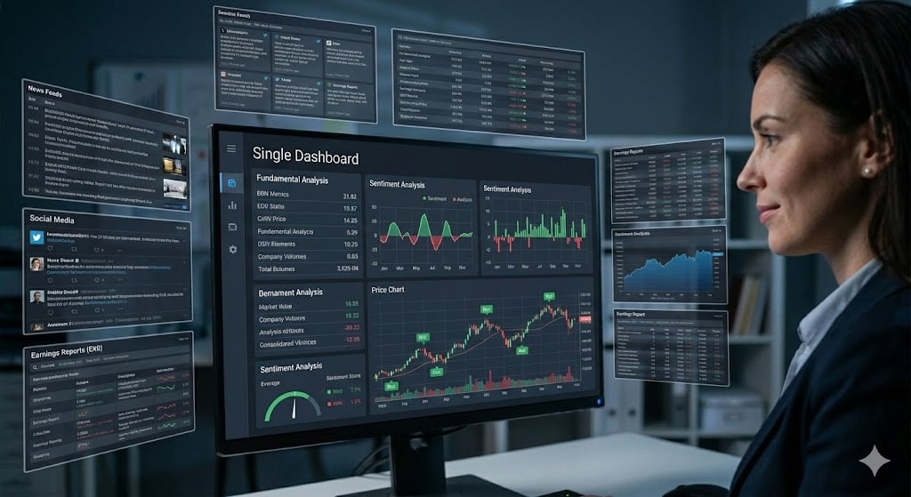 AI-powered analysis of multiple data sources including balance sheet, SEC filings, news, technical indicators, and more